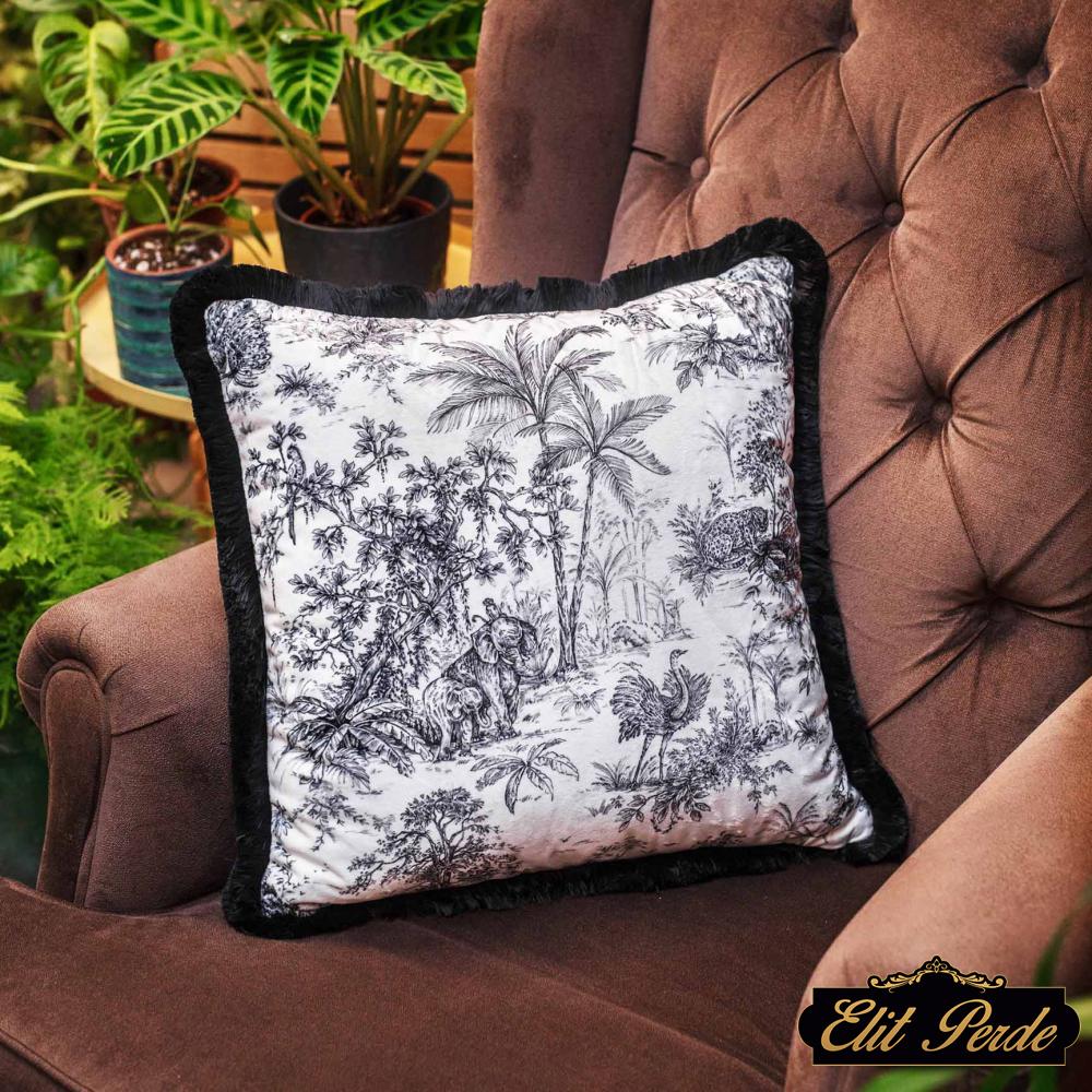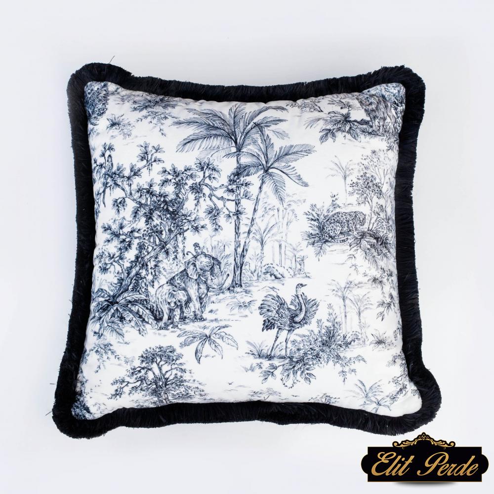 Ürün Kodu: Siyah Tropikal Orman Yastık - EY106